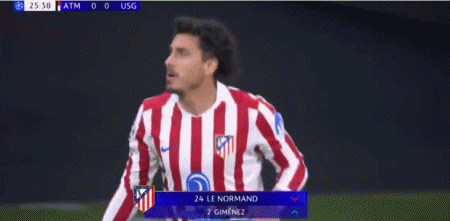 第39分钟,小西蒙尼助攻,阿尔瓦雷斯凌空抽射破门,马竞1-0