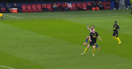 第80分钟,角球开出,赛克斯头球破门扳回一分,圣吉罗斯联合1-2马竞